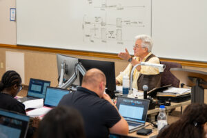 Pictured is Carl Moy, director of Mitchell Hamline’s IP Institute and professor of law, teaching a blended class.